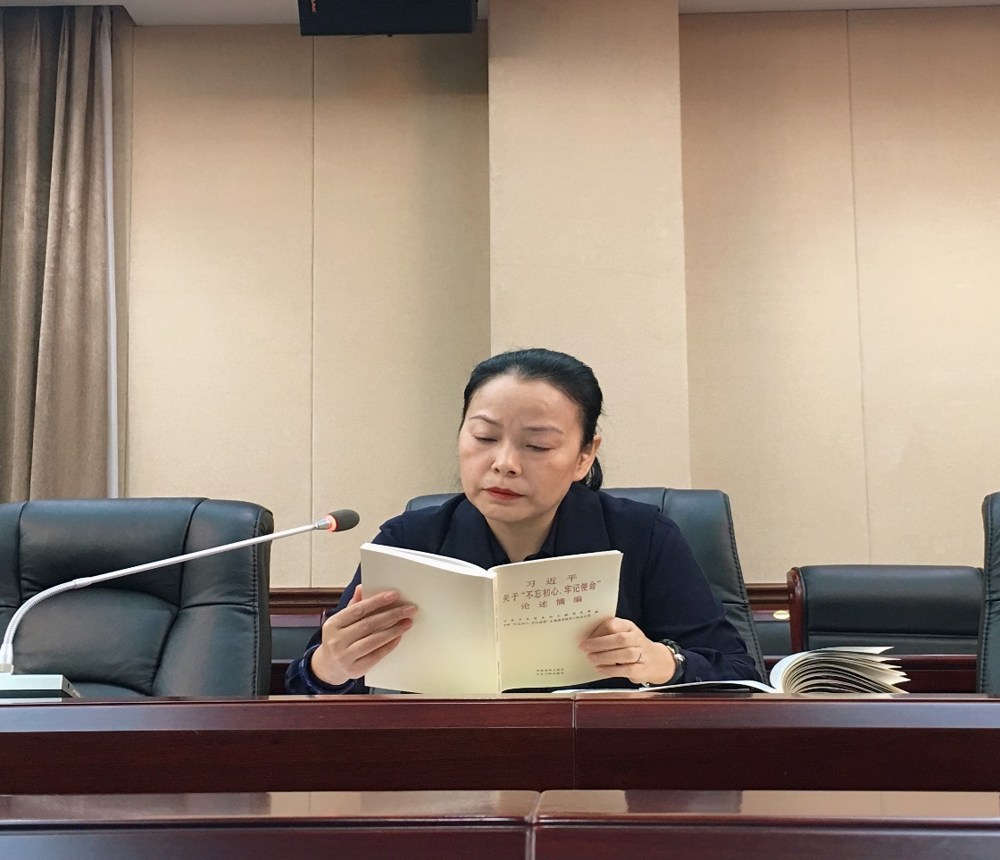 会后,邱明淑带领大家原文学习了《习近平关于“不忘初心、牢记使命”论述摘编》——“中国共产党人的初心和使命,就是为中国人民谋幸福,为中华民族谋复兴”全部内容。