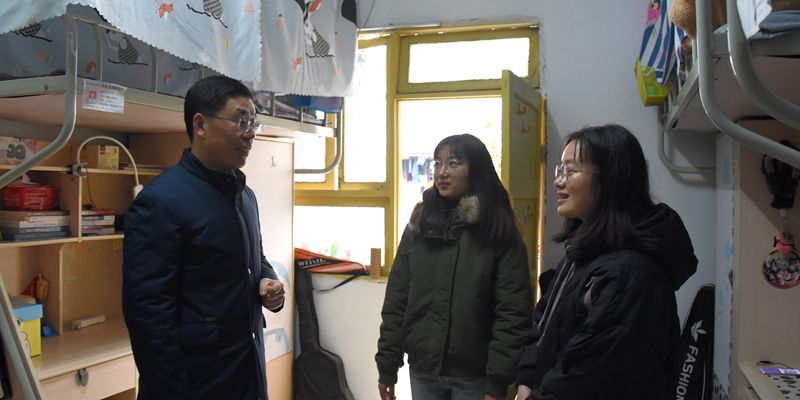 蔡校长率相关职能部门负责人深入学生寝室慰问留校学子,蔡校长向留校学子们送上节日的美好祝愿,并叮嘱留校学子要提高自我安全意识,遇到困难及时联系老师和宿管人员,学校会尽全力保障学生的安全,切实解决同学们的生活需求。得知大数据与智能工程学院2017级留校学生文舒玲正准备教师资格证考试后,蔡校长对该同学送上了鼓励,并嘱咐同学们要充分利用假期的宝贵时间沉心静气、沉淀自我,精进专业水准并规划好未来的就业方向,同时也要利用好春节返家的时间多陪伴父母,与长辈们多多交谈,尽一份孝心。