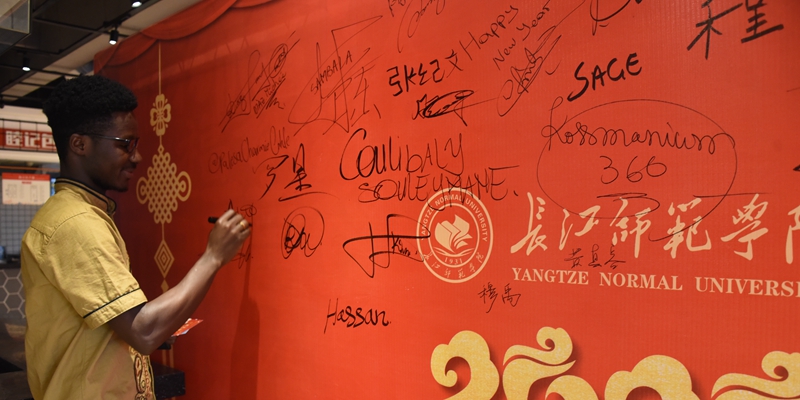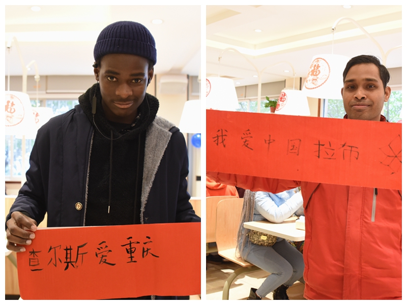 今年的团拜会以“我们好大一个家”为主题,共有150余名学生参加团年宴,其中有117名留学生。同学们早早到达食堂,或拿毛笔书写春联,或聚在一起包饺子,或三五一群聚在一起寒暄聊天,现场播放着喜庆的节日歌曲,大家都感受到了家的温馨。留学生们被现场氛围感染,用笔写下“我爱中国”“我爱重庆”等字样,留学生高笑笑说:“这是我第一次在中国过年,中国传统文化魅力十足,感谢学校让我感受到欢乐的中国年。”