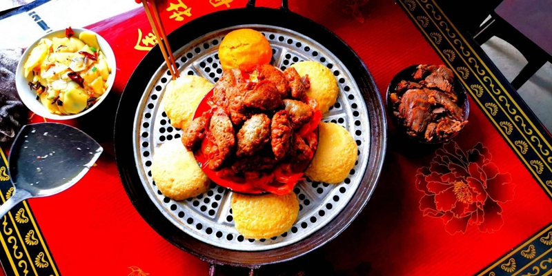 黔江区年夜饭特色菜品蒸粑粑和蒸虾,寓意新的一年团团圆圆,幸福美满。