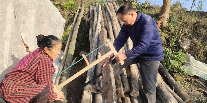 最后一门考试考完,我赶在当晚回到了家里,见到了想见的亲人。第二天下午天气甚好,看见婆婆爷爷在锯木块,画面很是温馨,过年最重要是亲人能够开开心心地在一起!
