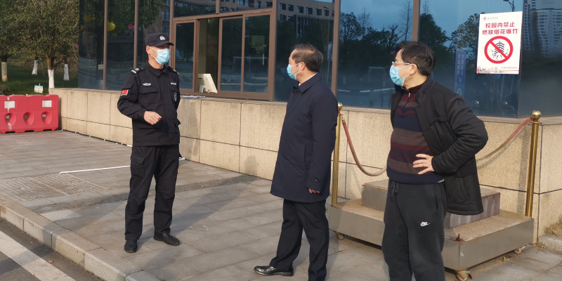 1月28日,学校党委书记黄大勇、副校长杨双率学校“防控新型冠状病毒感染的肺炎”办公室全体同志检查了学校疫情防控工作。