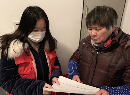 财经学院2019级学生钱逸雯来自浙江嘉兴,居住地有大量武汉返乡人员和武汉籍人口。因为当地接触湖北疫区人口较多,工作人员需要走家串户摸查登记,排查工作量较大,于是钱逸雯自愿报名参与了社区志愿活动。她每天主要负责测量、登记进出小区人员的体温,登记各个家庭的情况、监督被隔离的家庭。在钱逸雯的动员下,她的家人全都报名参加了志愿者活动,甚至连住在农村的爷爷也报名参加了疫情防治工作,祖孙三代一同参与到抗“疫”前线。“多难兴邦,只要我们团结一心,相信胜利的曙光一定就会来临。”钱逸雯如是说。