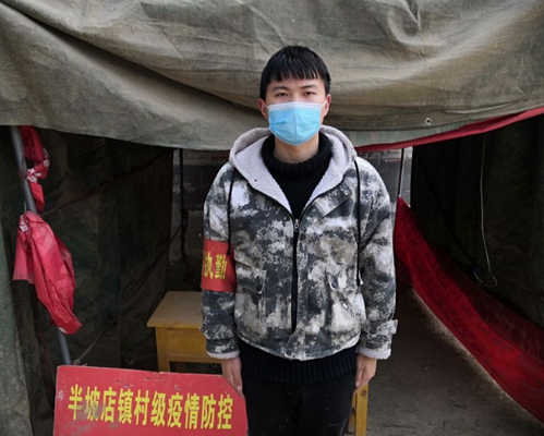 2017级计算机科学与技术专业学生、学生党员邵豪,是一名预备役军人和预备党员,疫情防控期间,他自愿加入所在居委会的疫情防控小组,成为一名社区防疫志愿者,主要负责在村委会设置的疫情卡点处检查往来人员、测量体温、登记信息,并逐一排查车辆信息,规劝村民少出门以及监督来村人员隔离情况等。“我相信,有很多的有志青年同样奋斗在疫情防控的战线!勇敢战‘疫’,以实际行动展现当代青年的青春风采。”邵豪同学说道。