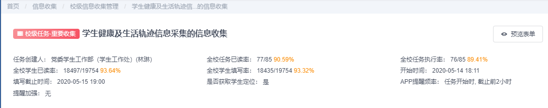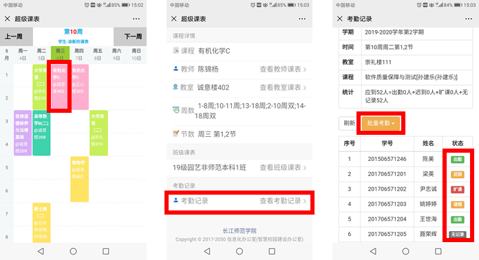 学校运用“智慧校园”平台掌握师生的信息动态,为疫情防控提供精准信息。“每日报平安”等信息采集系统有效运行着,当前每天信息采集率在98.9%以上;“一体化学生考勤系统“已优化运行,在复课后将服务各班上报上课考勤信息,二级学院、相关职能部门可实时查询、统计考勤结果,省掉繁杂的考勤流程。