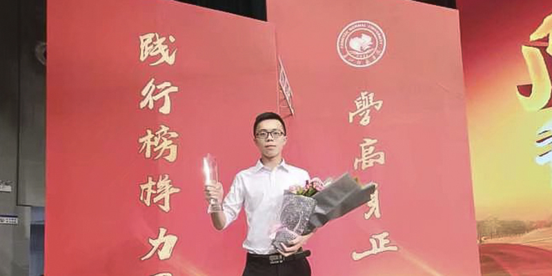 念而望远,孜孜不倦。申雪峰不仅在学习和科技创新上取得佳绩,担任学生干部也认真负责。他是班级学习委员,为全班同学的学习服务,认真做老师与同学沟通的桥梁和纽带。作为学校机电工程应用技术协会会长,申雪峰带领社团多次举办志愿活动,他说:“在集体工作中,你不是一个人在孤军奋战,最大的能量是团队的力量。”