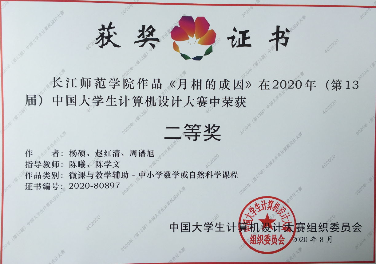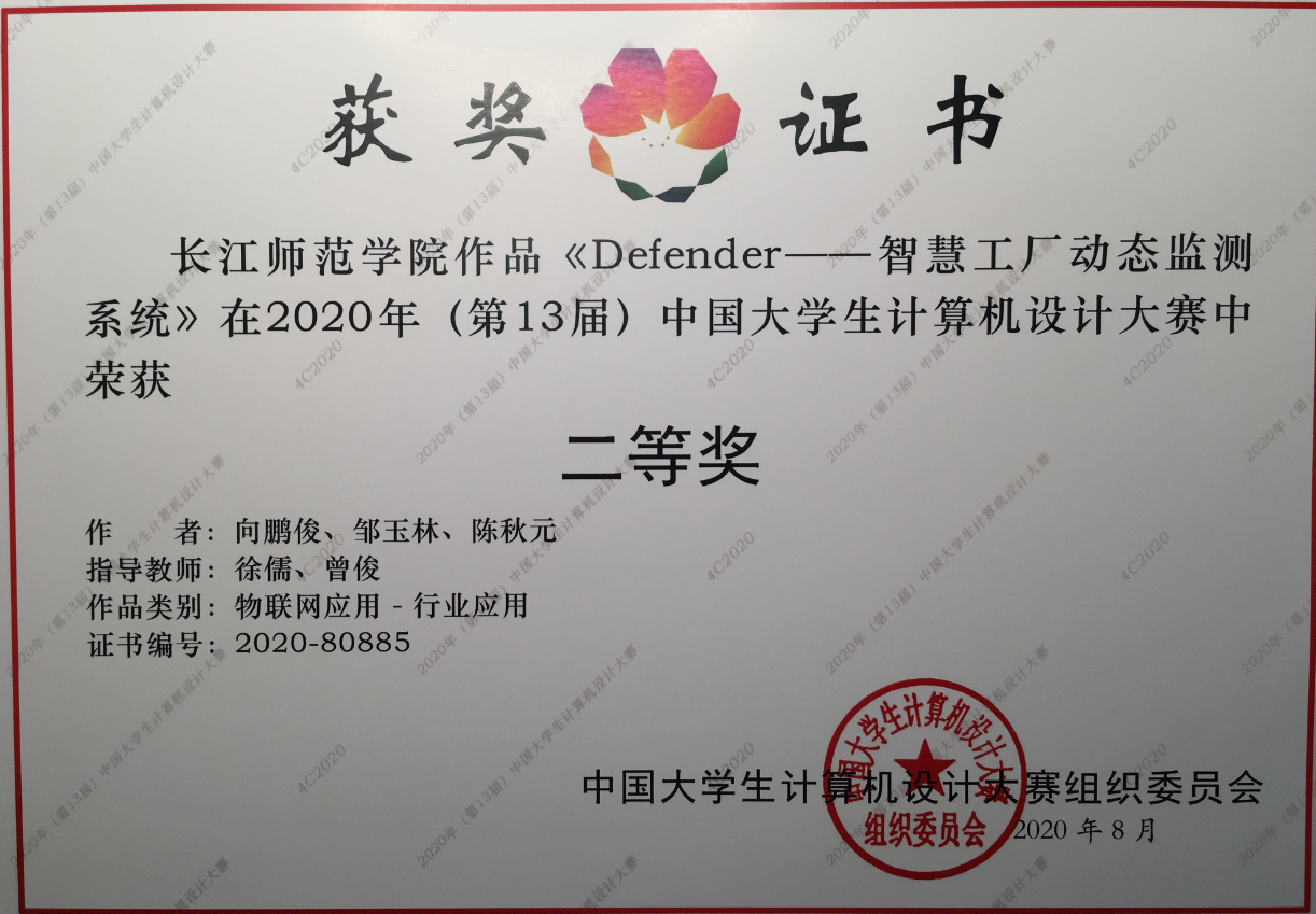 2020年大赛作品内容共分14类(组),我校学生参加了其中的人工智能、物联网应用、软件应用与开发、人工智能、微课与教学辅助4类。经过学校初赛、重庆市复赛,我校共获得市级奖项8项,最终《青菜头-AI》《e-Task电子作业管理系统》《Defender-智慧工厂动态监测系统》《月相的成因》《ilearn在线学习》等5项作品参加国家级决赛。