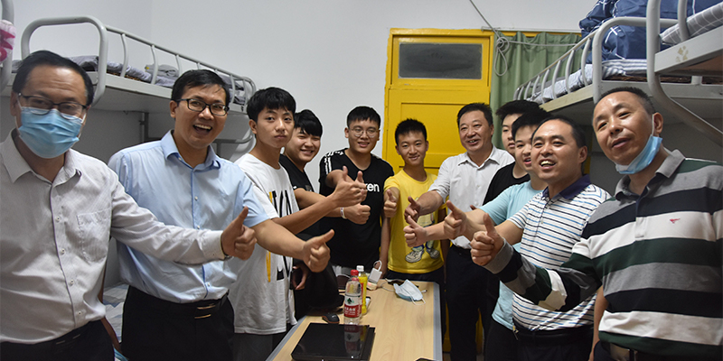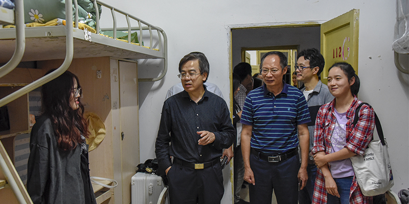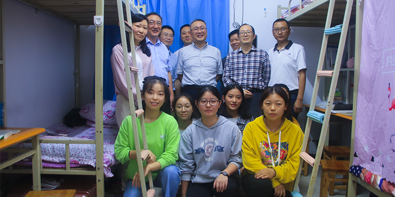 9月16日晚,党委书记黄大勇,党委副书记戴玄,副校长杨双、袁革走访新生宿舍,与2020级新生们寒暄交流。党政办公室、学生工作部、团委等相关职能部门负责人陪同走访。