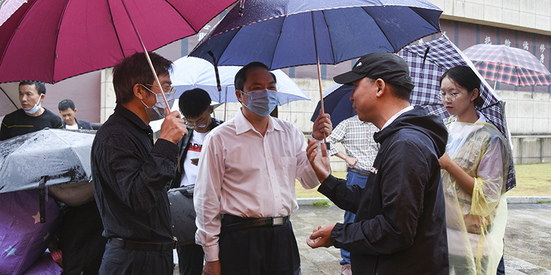 9月15日—16日,学校迎新工作有序开展,学校党委书记黄大勇、校长蔡家林、副校长杨双前往迎新报到点,看望新生与迎新工作人员,与新生家长亲切交流,了解各学院报到进展。党政办公室、学生工作部、安全管理处等职能部门负责人陪同检查。