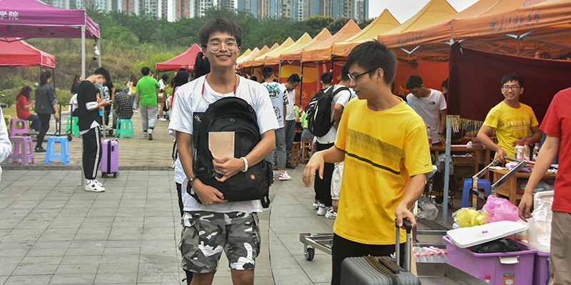 来自河南的张旭阳是机器人工程学院智能制造工程系的新生。谈起重庆这个地方,张旭阳毫不犹豫地对记者讲述着对这座山城的喜爱。虽然路程相距1300多公里,但他和父母、妹妹早早地来到长师报到,学院的学长学姐、辅导员的热情接待消除了他第一次远行的紧张情绪,让他很快地融入新的“大家庭”。把张旭阳送到学校南门后,张爸爸张妈妈在南门看着他独自注册、进入校园,张妈妈说:“希望孩子能留在这座他喜爱的城市,努力学习,多学本领,毕业后为社会做贡献。”
