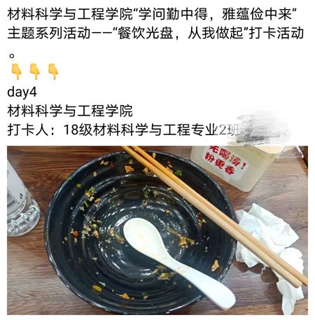 材料科学与工程学院开展“餐饮光盘,从我做起”打卡活动