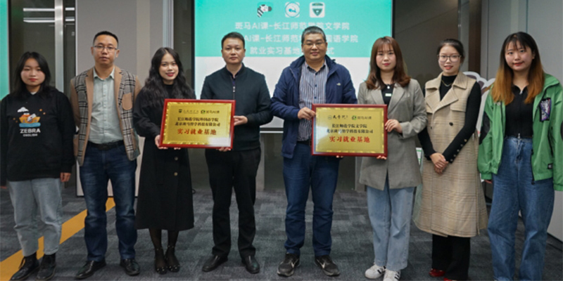 文学院、外国语学院负责人与斑马AI课-重庆选聘负责人签订了实习就业基地合作协议,并为“长江师范学院文学院实习就业基地”和“长江师范学院外国语实习就业基地”授牌。