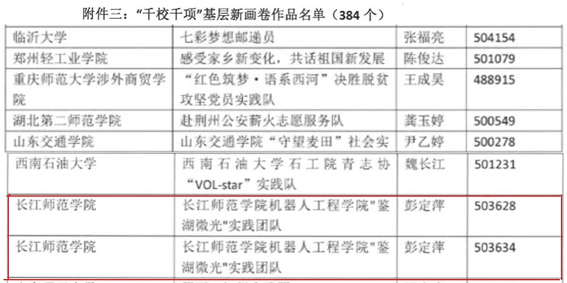 近日,2020全国大学生“千校千项”成果遴选结果公布。我校数学与统计学院“‘新芽’志愿者服务团”、机器人工程学院“‘鉴湖微光’实践团”成功入选“最美团队”;“‘鉴湖微光’实践团队”2个摄影作品成功入选“基层新画卷”。