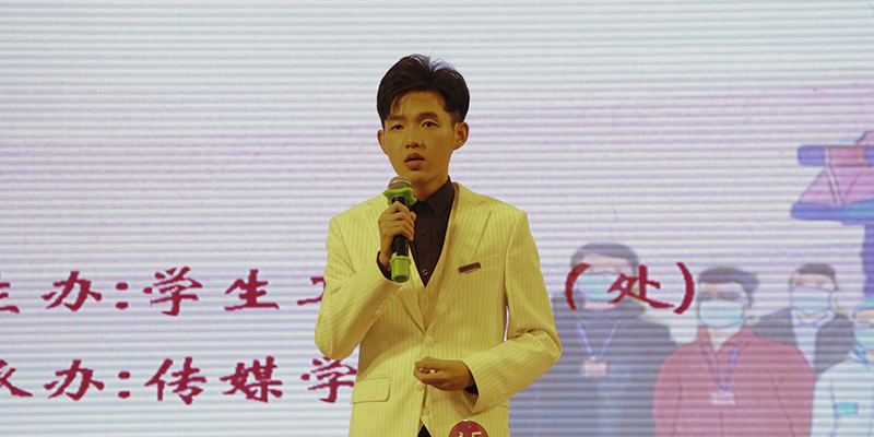 来自绿色智慧环境学院的赵雨琦同学以《那座山》为题,讲述了她的父亲在疫情期间坚守岗位的故事,并向在场观众讲述了她内心的所想所感。机器人工程学院的袁圣朝同学用饱含深情的演讲,将他的姐姐投身于抗疫斗争的故事表达得淋漓尽致,在场的观众都被他的演讲所打动。传媒学院的王巍霖同学以《疫情,唤醒人心》为题,讲述了一位中国人匿名捐赠口罩的故事,他在演讲中说道,共同抗击新冠疫情的艰难日子将中国人民再一次紧紧联系在一起。