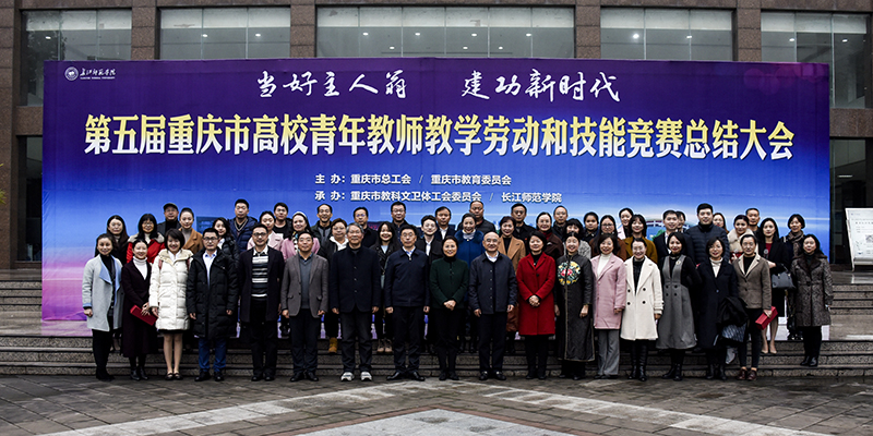 11月27日下午,第五届重庆市高校青年教师劳动和技能教学竞赛总结大会在我校鉴湖学术报告厅举行。重庆市总工会一级巡视员、市教科文卫体工会主席杨军波,重庆市委教育工委委员、市教委二级巡视员帅逊,我校校长蔡家林、副校长向小川,重庆市教委高教处处长蒋云芳,参赛高校工会主席负责人,专家评审组组长,获奖选手代表以及我校相关职能部门、二级学院负责人参与此次总结大会。会议由重庆市教科文卫体工会常务副主席贺莉主持。