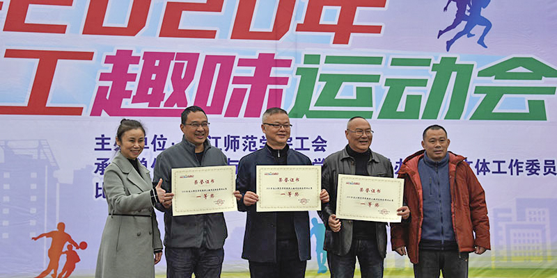 12月4日下午,学校2020年教职工趣味运动会在行知体育场举行。学校校长蔡家林出席运动会开幕式并宣布开幕,副校长向小川致辞。趣味运动会由校工会主办,体育与健康科学学院、校体委、工会文体工作委员会承办,学校广大教职工们身着运动装在运动场同场竞技、增进友谊。