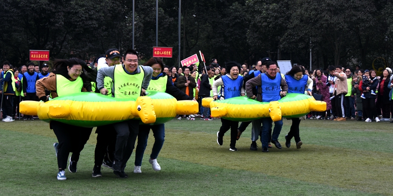 下午14时许,行知体育场人声鼎沸、气氛热烈。运动会现场设有运转乾坤、众星捧月、同舟共济、一掷千金、龟兔赛跑五个项目。虽然寒风凛冽,但教职工们的热情却丝毫不减。在“一掷千金”的赛场上,每位参赛选手积极热身“找手感”,精准掌握力度,然后将实心球投掷到红心处。另一边的“同舟共济”赛场上,一只只色彩鲜艳的“龙舟”格外醒目,运动员们坐在龙舟上,再迈着统一步法奋力朝终点跑去......运动员们齐心协力奋斗在赛场,场外的观众更是不断呐喊助威,欢呼声一阵高过一阵,在欢声笑语中大家的友谊得到了升华。