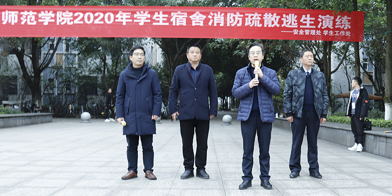 日前,我校在南苑学生宿舍举行了2020年学生宿舍消防疏散逃生演练活动。涪陵区公安局团结派出所所长王政勇,我校副校长杨双,安全管理处、学生社区自我管理委员会负责人到场观摩指导演练活动。全体宿舍管理人员,二级学院辅导员代表,校医院代表,部分学生代表参加演练活动。