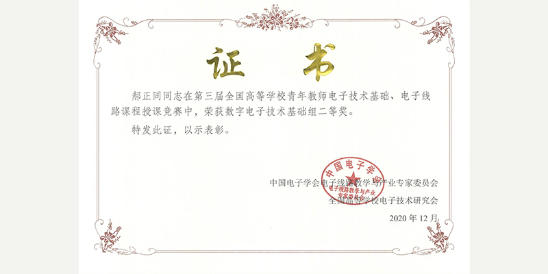 近日,第三届全国高等学校青年教师电子技术基础、电子线路课程授课竞赛决赛在三亚落下帷幕。全国140多所本科院校、93位教师进入决赛现场竞技。经过激烈角逐,我校电子信息工程学院教师郝正同荣获数字电子技术组总决赛二等奖。