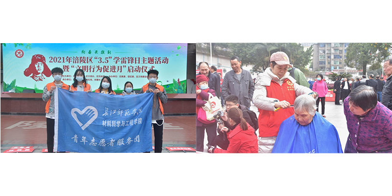 材料科学与工程学院辅导员刘梦真带领学生志愿者前往易家坝广场参与了“向春天报到——2021年涪陵区‘3·5’学雷锋日主题活动暨‘文明行为促进月’启动仪式”。活动中,志愿者聆听了星级志愿者分享的“志愿故事”,观摩了“志愿集市”上的义务理发、健康卫民、免费制作花束、垃圾分类、环保酵素等志愿服务项目。