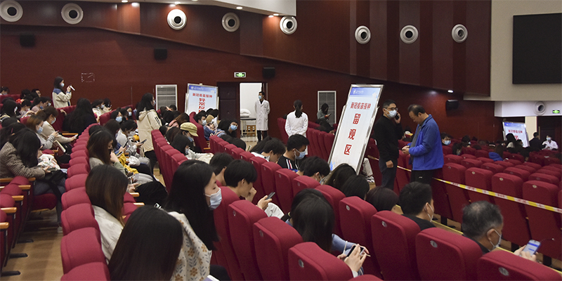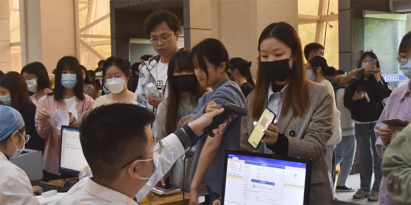 4月14日上午,我校在拏云学生活动中心开展第二次新冠病毒疫苗接种工作。本次接种共设10个接种台,40余名医护人员从早上8:00开始接种,截至4月14日17:30,共有5805名师生在当天完成接种。据统计,我校累计16740名师生员工完成新冠病毒疫苗接种。