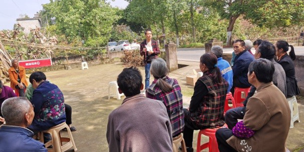 赠旗仪式上,郎书记代表全体村民真切的说道:“我代表全体村民感谢团队两年来对百汇村龙眼种植的帮助指导,团队不仅指导龙眼生产管理,还送农药、送生物防治益虫、送优良品种嫁接枝条,尤其是对我们忧心已久的蝽象危害问题,基本控制解决,让全村龙眼得以丰收,让我们倍感温暖。”李昌满副院长代表龙眼荔枝团队答谢村民说:“团队开展龙眼种植科技服务是团队践行习总书记‘做大做强重庆宝贝’嘱托的行动,也是重庆市现代山地特色高效农业技术体系的要求。团队对百汇村龙眼种植的帮扶是长期行动,目前正在开展蝽象综合防治与新品种嫁接,后面还将开展树体矮化栽培与大小年结果控制技术指导。团队服务目标是让村民学会龙眼种植管理技术,提高种植效益”。