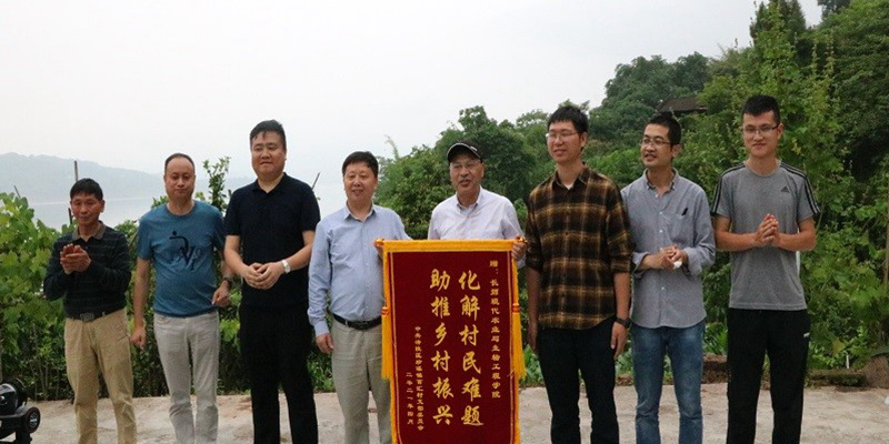 2021年5月12日,涪陵区珍溪镇百汇村举行了一场致谢送锦旗活动。镇政法书记郎广荣代表百汇村村民,把一面印着“化解村民难题,助推乡村振兴”的锦旗送给现代农业与生物工程学院“长江上游龙眼荔枝工程技术研究中心”科研团队,感谢团队近两年来对百汇村龙眼种植的指导帮扶。李昌满副院长代表团队在热烈的掌声中接过锦旗。