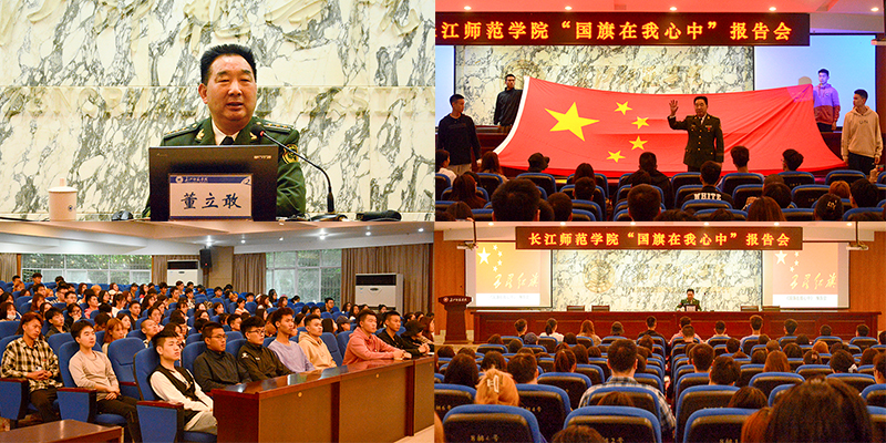 校团委邀请了首任天安门国旗班班长董立敢到校开展“国旗在我心中”爱国主义教育主题活动。董立敢班长在鉴湖学术报告厅作题为“国旗在我心中”专题报告会,向同学们讲述了国旗诞生、国旗情缘、国旗风采、国旗礼仪四个方面知识,并结合自身经历,深情地讲述与五星红旗的动人故事。