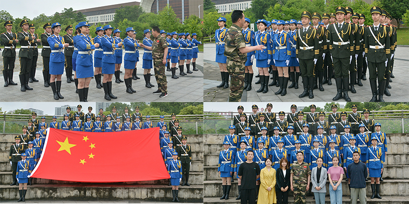 董班长还现场指导了我校国旗护卫队的训练,他从基本的军姿站立、齐步、正步再到升旗细节礼仪一一进行了指导。董班长勉励国旗护卫队的队员们:“国旗是国家的象征、民族的骄傲,作为一名国旗护卫队的战士要有无上的自豪感、荣誉感。平时的训练是艰辛的、枯燥的,但国旗升旗的那一刻,荡漾在旗手心间的是自豪与光荣。”