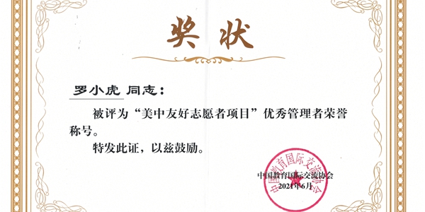 6月7日—8日,由中国教育国际交流协会主办的美中友好志愿者项目总结活动在北京举行。我校副校长向小川在大会上作主题发言,我校荣获“优秀院校”称号、国际合作与交流处教师罗小虎荣获“优秀管理者”称号。