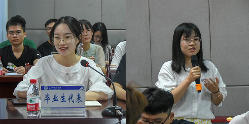 座谈会上,毕业生代表畅谈四年在学校的收获,表达了自己对母校、老师、同窗的惜别之情和感激之情,同时结合在校期间的学习、生活情况,为母校的发展建言献策,并送上深深的祝福。
