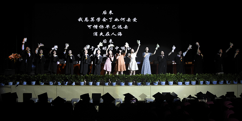 教师代表白淑琴希望毕业生们能心中有爱,做懂得感恩的人,懂得宽容和善待;坚持学习,做有事业心的人;热爱生活,做有幸福感的人。她祝愿同学们满载着对未来的憧憬,驾驭生命之舟,在新的岁月里扬帆起航。