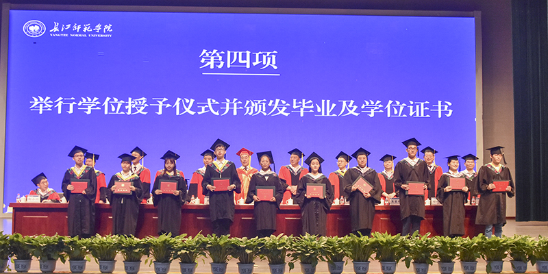 6月17日上午9时,学校2021届学生毕业典礼暨学位授予仪式在拏云学生活动中心隆重举行。校长、学位评定委员会主任委员蔡家林,副校长袁革、向小川、米永生,纪委书记赵骏,学位评定委员会委员、教师代表、毕业生代表出席典礼。