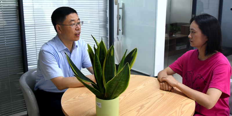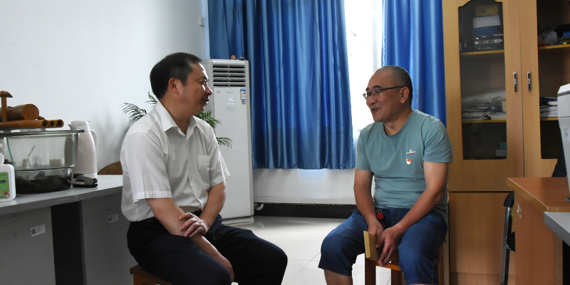 在崇信楼508办公室,黄大勇书记和大数据与智能工程学院的党员教师蔺尧辉亲切交流。黄书记关切地询问蔺老师的身体情况、家庭近况,嘱咐他要保重身体,并表示学校会帮助他解决生活中的急难愁盼。蔺老师对学校党委长期的关心十分感谢,并表示一定不辜负党和学校对他的关心关怀,积极工作、改善现状,为学校的发展多作贡献。