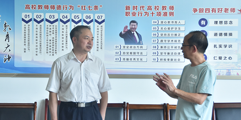 连日来,涪陵区气温多次突破40°C,高温的暑日热浪灼人,但校园仍有许多教职员工坚守岗位。8月3日,党委书记黄大勇率相关职能部门负责人前往文学院、政治与历史学院、学校南门等地,检查暑期疫情防控工作,看望教职员工、施工现场的工人,为他们送上消暑的矿泉水,向他们的辛勤付出致以慰问。