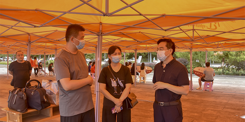 当天下午,副校长杨双来到南门迎新报到点,了解新生报到注册情况,慰问迎新的教职员工和志愿者,并与新生、家长亲切沟通交流。他表示,各二级学院必须做好与学生家长的沟通工作,职能部门要做好相应的服务工作,保证迎新顺利进行。在休息区,杨双副校长向新生与家长们介绍了学校办学历史、部分专业情况,一位家长感动的说道:“这里的老师和同学都很热情、很周到,孩子在这里上学我们很放心。”