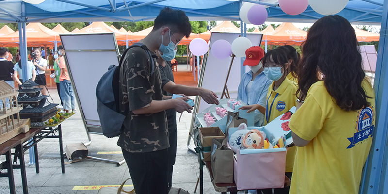 土木建筑工程学院以“开盲盒得礼品”的方式来迎接2021级的新生,新生可在入口处抽取盲盒,抽到除寄语外的红色纸条则可以兑换礼品,希望新生们都能像开盲盒得惊喜一样在未知的人生道路上遇到惊喜、获得快乐。