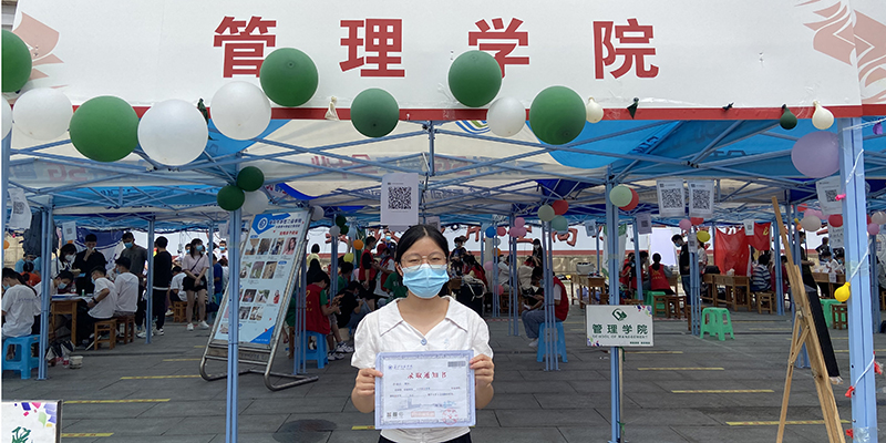 唐晓洁是管理学院公共事业管理专业的新生,她来自广西桂林。报到当天,她早早地来到了学校,完成入学报到后,她并没有立马去宿舍收拾内务,而是把自己的行李物品放在一边,在迎新现场当起了志愿者。唐晓洁说道:“我从小就喜欢帮助身边有需要的人,现在上了大学,我也要在大学期间积极参加志愿活动,成为一名有爱心的大学生。”她的梦想是多参加公益活动,温暖社会、服务社会。