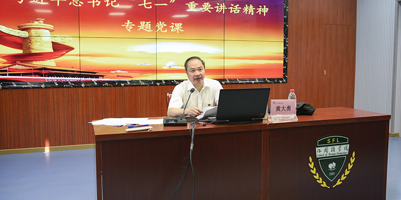 “我们要深刻认识习近平总书记‘七一’重要讲话的重大意义,传承弘扬伟大建党精神,牢记初心使命,坚定理想信念……”党委书记黄大勇在为师生讲授学习“七一”重要讲话精神专题党课时,坚定地向师生们说道。9月23日上午,党委书记黄大勇走进钩深楼501教室为外国语学院学生党员讲授专题党课;9月26日下午,黄书记在致远楼323会议室为宣传部、党政办公室、组织部、财经学院、外国语学院的教师党员讲授专题党课。