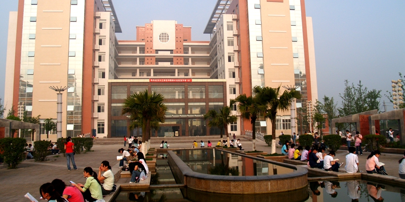 2007年5月,图书馆建成使用,广大学子在图书馆前晨读。