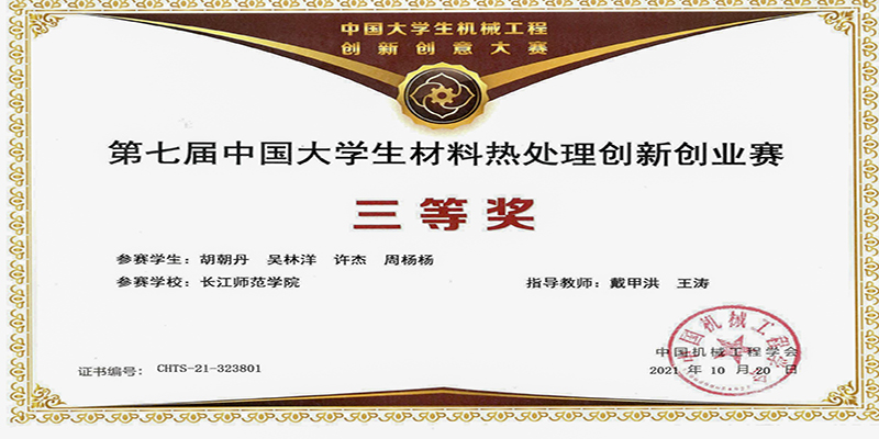 日前,第七届中国大学生材料热处理创新创业赛举行了线上总决赛。比赛由中国机械工程学会主办,中国机械工程学会热处理分会承办,来自全国115所高校的376支队伍参加。通过线上作品展示、基础知识问答、热处理综合答辩和专家评审等环节,我校材料科学与工程学院学生胡朝丹、吴林洋、许杰、周杨杨四名同学的作品荣获三等奖。
