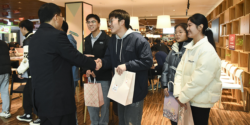 餐前,黄大勇、蔡家林、杨双分别为同学们送上了一条围巾,并叮嘱大家在冬天注意保暖。“专业学习上有没有困难”“平时有没有参加学科竞赛”“所在的班级有没有家庭很困难的同学”,用餐时,校领导与同学们一边进餐一边交流,询问大家的学习生活情况,同学们主动讲述自己的学习实践情况,他们自信的语言表达、明确的学习目标、充实的大学生活得到了师长们的赞赏与肯定。同时,同学们还从校园管理服务、快递点设置、加强学生防诈骗教育等方面提出建议,校领导们认真倾听了同学们的发言,并现场反馈给相关职能部门与二级学院,督促尽快改善到位,为同学们的生活学习提供便利。