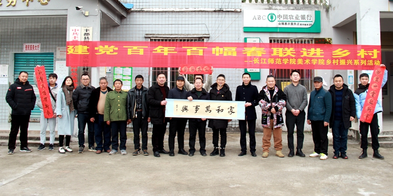 1月9日,美术学院党总支部分师生党员前往丰都县保合镇盖灵庙村,开展“百副春联助力乡村振兴”活动。美术学院党总支负责人傅小彪、教师党员李象松和两名学生党员挥毫泼墨,为盖灵庙村村民送上亲笔书写的祝福。村民们在现场欣赏书法作品,并热情地与师生们寒暄,活动现场热闹非凡,洋溢着喜庆的氛围。