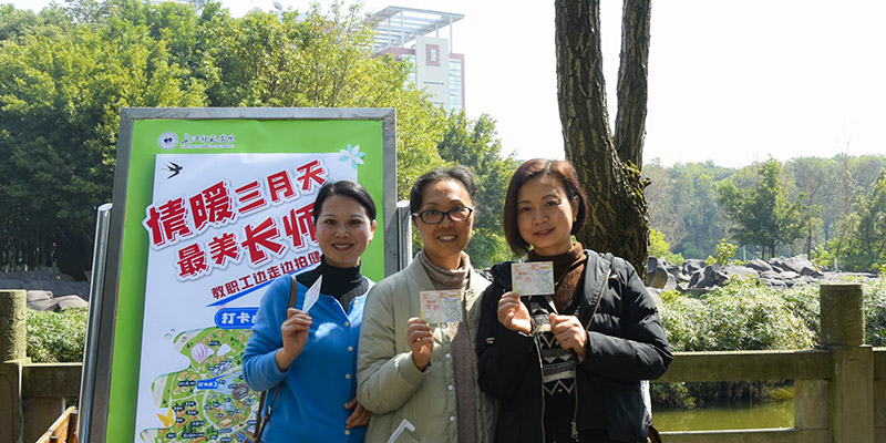 活动由校工会主办,时间从12点10持续到14点,设有行知体育场、鉴湖、拏云学生活动中心3个“打卡”点,参加活动的教职工需要步行并拍摄校园美景。活动得到了教职工们的热烈响应,结束完上午的工作,老师们迈着矫健的步伐,沿着行知体育场—鉴湖—拏云学生活动中心沿线奔走,漫步林荫大道、看黑天鹅悠然嬉戏、醉心于繁花盛开……大家既欣赏着校园美丽的春景,又享受着运动带来的愉悦,灿烂阳光下,一张张笑靥如花、朝气蓬勃的脸庞,展现出长师教职工们健康向上的精神面貌。
