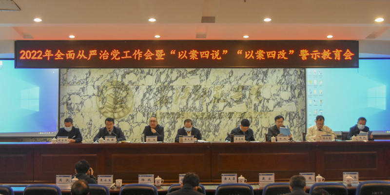 4月18日下午,学校在鉴湖学术报告厅召开2022年全面从严治党工作会暨“以案四说”“以案四改”警示教育会。全体校领导、党委常委,党委委员、纪委委员,副处级以上干部,教学院(部)党委(党总支、直属党支部)主要负责人,职能部门、科研机构、学术传播机构主要负责人参加会议。党委书记黄大勇出席会议并讲话,校长蔡家林主持会议。
