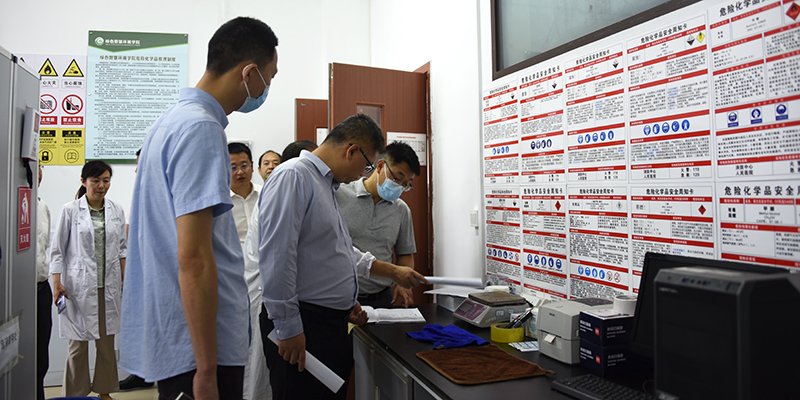 会后,专家组分为两组对我校危化品库房、废弃物中转柜,材料科学与工程学院、绿色智慧与环境学院、机器人工程学院、现代农业与生物工程学院、土木建筑工程学院、化学化工学院的部分实验室进行了现场检查,并查阅了我校组织体系、规章制度、安全检查、危化品管理、废弃物处理等方面的实验室安全管理档案材料。