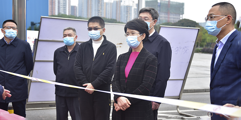 11月17日下午,市政协副主席谭家玲一行到我校调研指导疫情防控工作。市政协经济委主任江涛、副主任吴景明,市农委副主任詹仁明,涪陵区领导王志杰、刘忠、杜海波、喻显镔、谢成洪、卢政、冯星贵、郑小平、靖开媛,我校党委书记黄大勇、副校长李柳柏陪同调研检查。