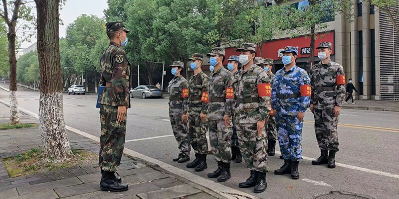 退伍大学生士兵志愿者连队分为巡逻组、执勤组。巡逻组主要负责防护提示、疏通人流、确保道路通畅等工作,在维护校园防控秩序起着重要作用;执勤组在校医院、综合篮球场、弘毅体育馆、行健体育场等地点都设有执勤岗位,负责定点警戒的志愿者实行轮班制,一天两班、一班两个半小时,制止私自送、取外卖和快递的行为,有效杜绝了潜在的疫情传播风险。当其他同学奔向食堂取餐或回宿舍休息时,志愿者们仍然毫无怨言地坚守岗位。