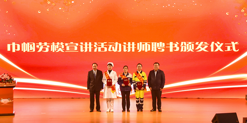 陈刚、黄大勇向劳模颁发“巾帼劳模宣讲活动讲师”聘书