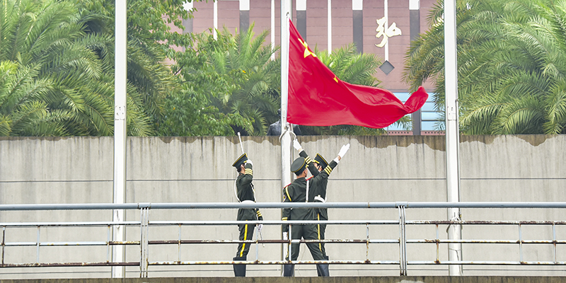入场仪式结束后,举行了庄严的升国旗仪式。在雄壮的国歌声中,五星红旗冉冉升起,迎风飘扬。